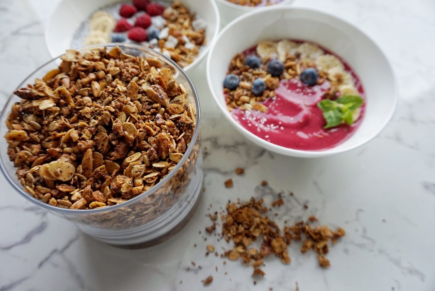 Nun könnt Ihr das Topping in eine Dose verschließen und für die verschiedensten Speisen verwenden wie z.B. Acai Bowl, Chia Pudding, Joghurt oder wie wär’s mit einem Bratapfel?