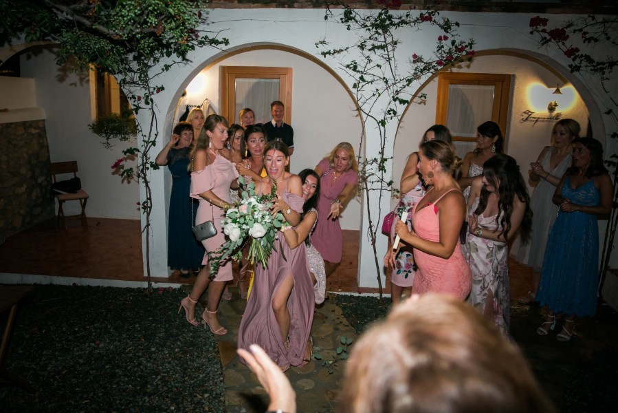 Nach der Zeremonie fuhren wir alle in die Location die in einer kleinen Finca in den Bergen lag. Wir wurden mit großem Jubel und Seifenblasen empfangen. Es wurde auf einmal ziemlich schnell dunkel, somit haben wir keine Fotos mehr mit Family & Friends bei Tageslicht machen können, was wir im Nachhinein sehr schade fanden.