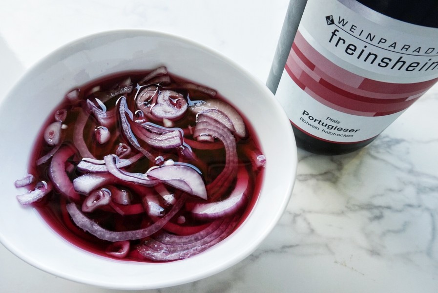 2 Rote Zwiebel (Gourmet Tipp: Zwiebelscheiben vorab in Rotwein einlegen und in etwas Honig anbraten)